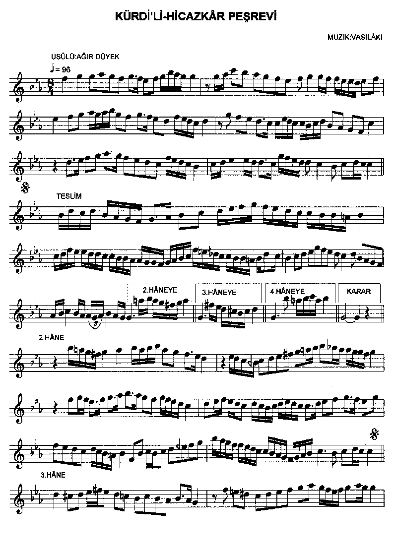 Kemençecı Vasilaki    1845-1907 Kürdîlihicâzkâr Peşrev Ağir düyek . smaller | larger