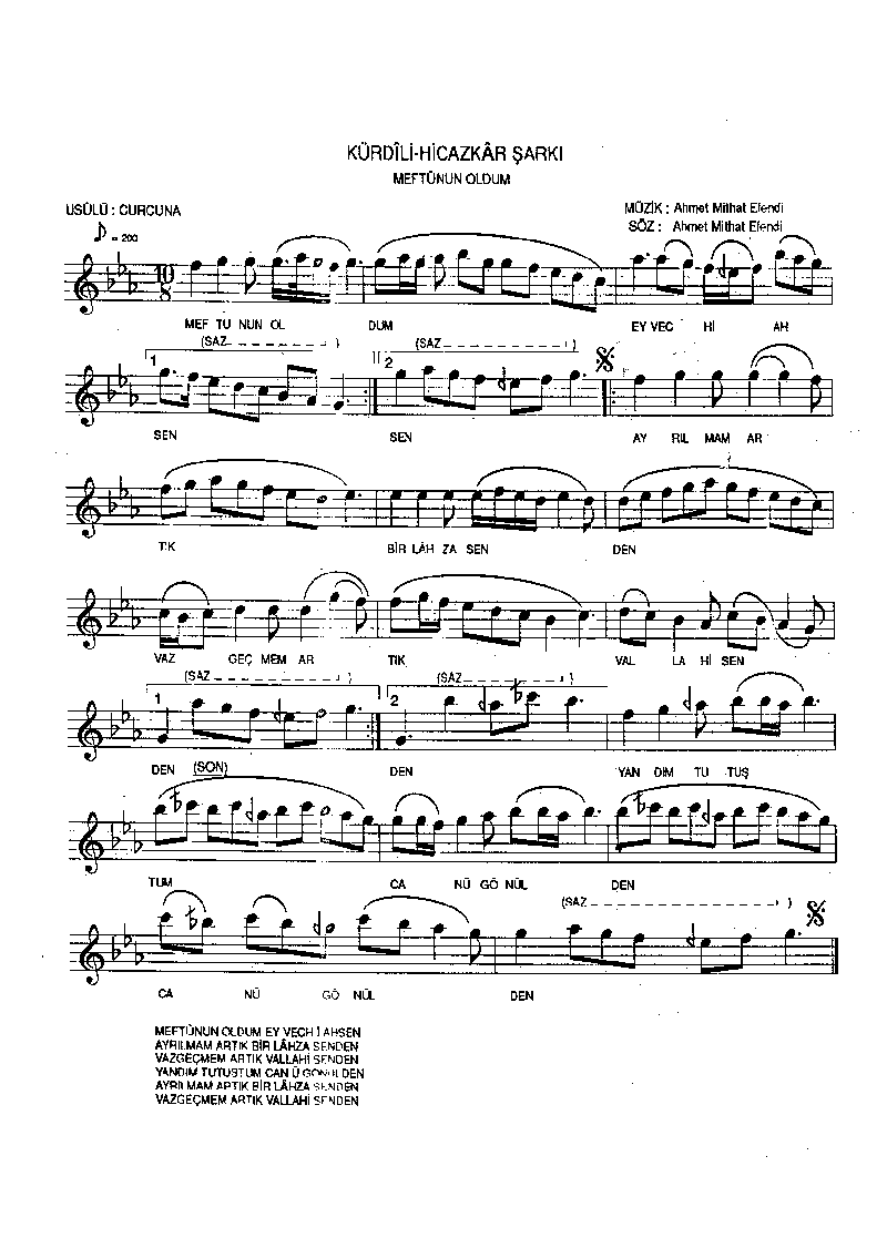 Ahmet Mithat Efendi    - Kürdîlihicâzkâr Sarkı Curcuna Meftunun Oldum smaller | larger
