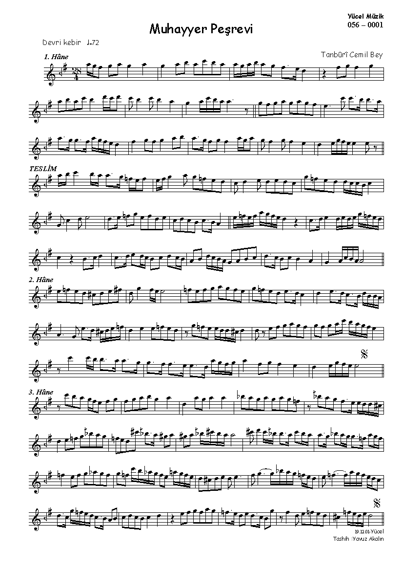Tanbûrî Cemil Bey    1871-1916 Muhayyer Peşrev Devr-i kebîr . smaller | larger