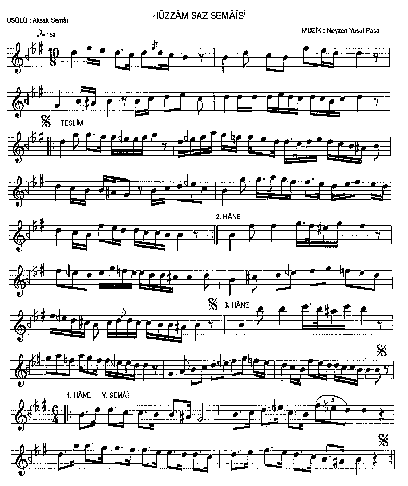 Yusuf Paşa    1840-1895 Hüzzâm Saz Semâî Aksak semâî . smaller | larger
