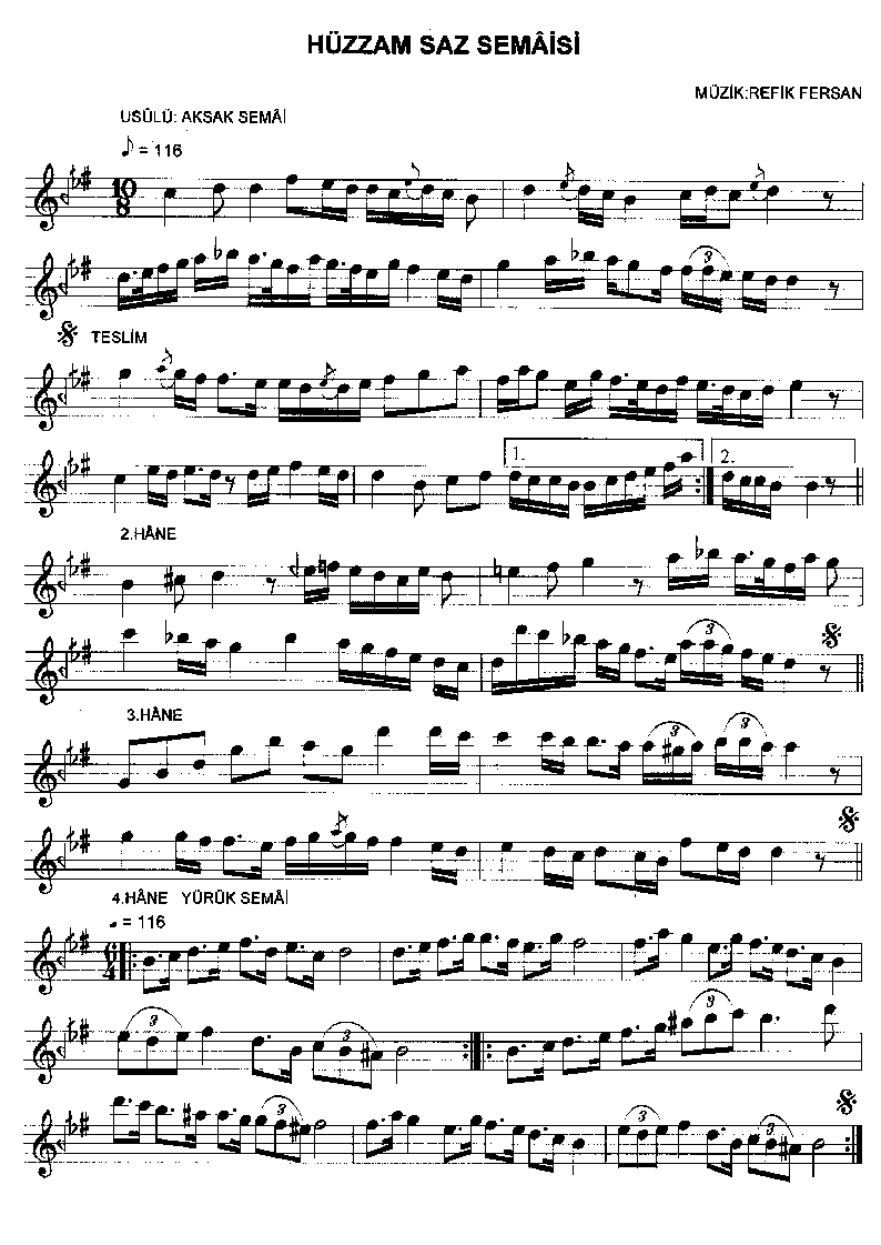 Refik Fersan    1893-1965 Hüzzâm Saz Semâî Aksak semâî . smaller | larger