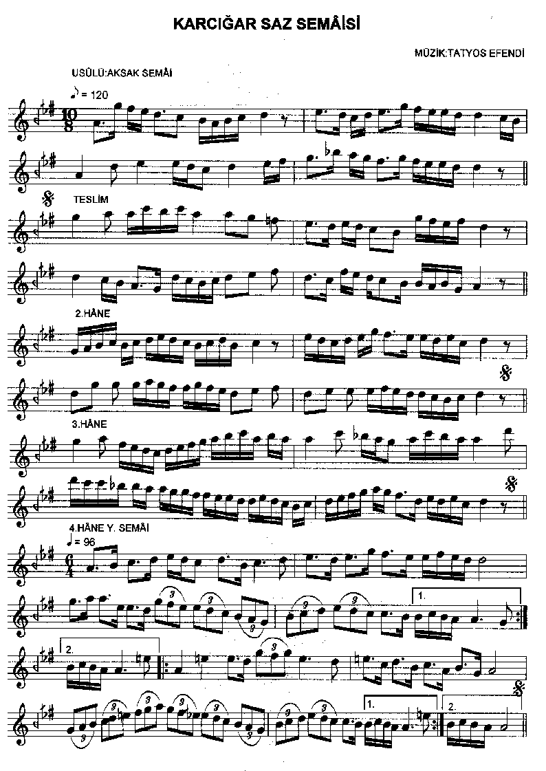 Kemani Tatyos Efendi    1855-1913 Karciğar Saz Semâî Aksak semâî . smaller | larger